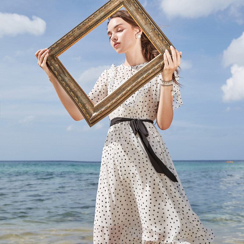 Even as summer is about to end, we shouldn’t miss the last chance to showcase our summer style. The all-over print short-sleeve dresses bring a visual feast with their bright colors and unique patterns.