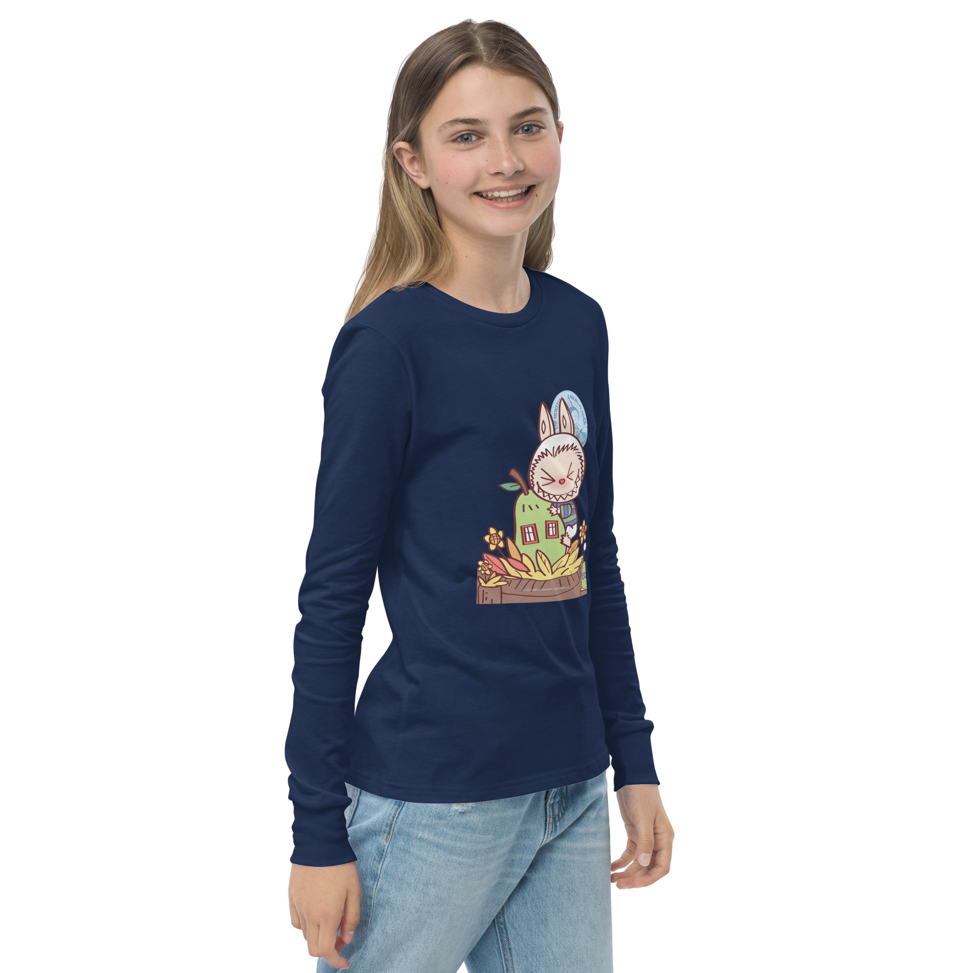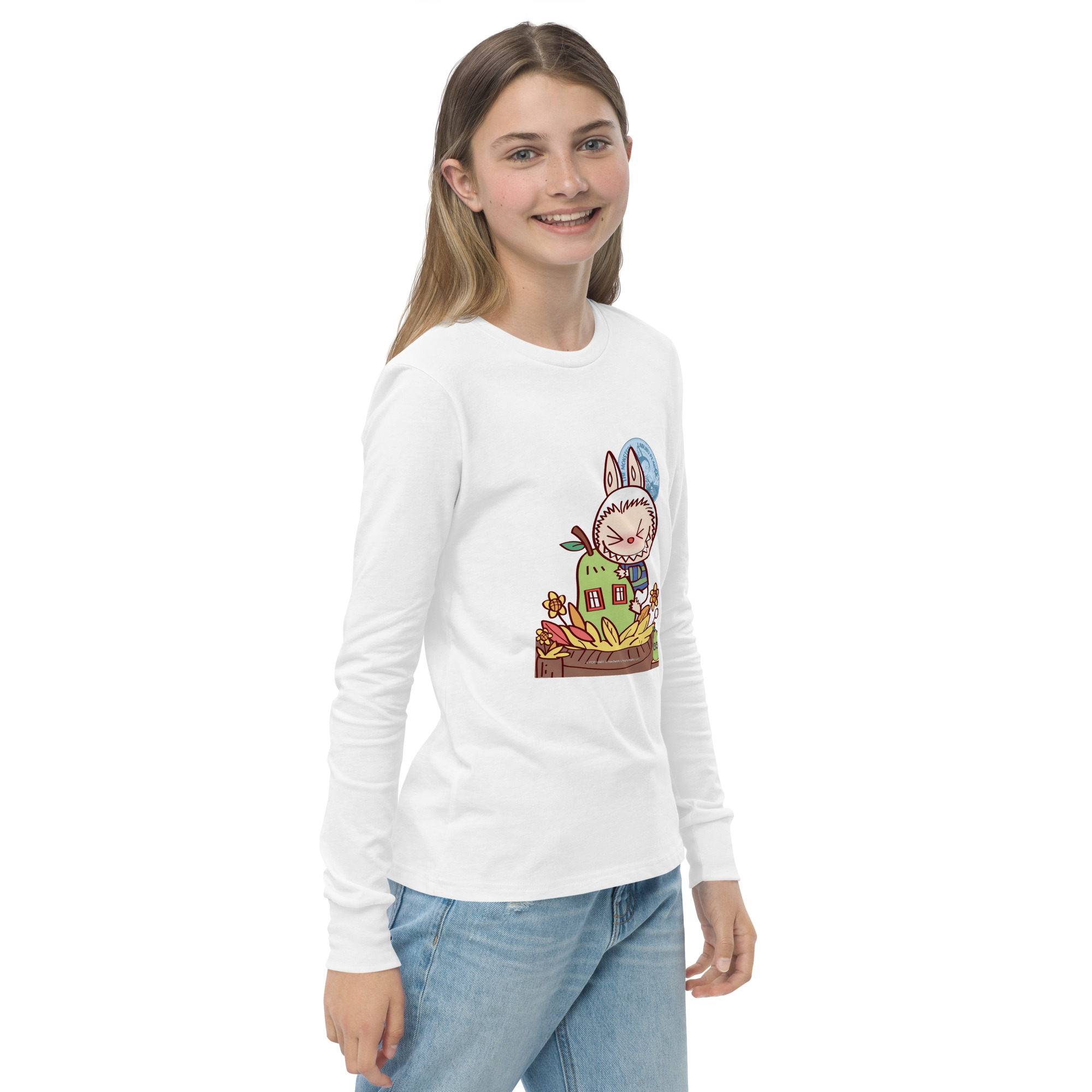 The Youth Long Sleeve Shirt is made of Airlume combed and ringspun cotton, which is known for its softness and durability. The shirt has a regular fit, classic crew neck, and ribbed cuff.