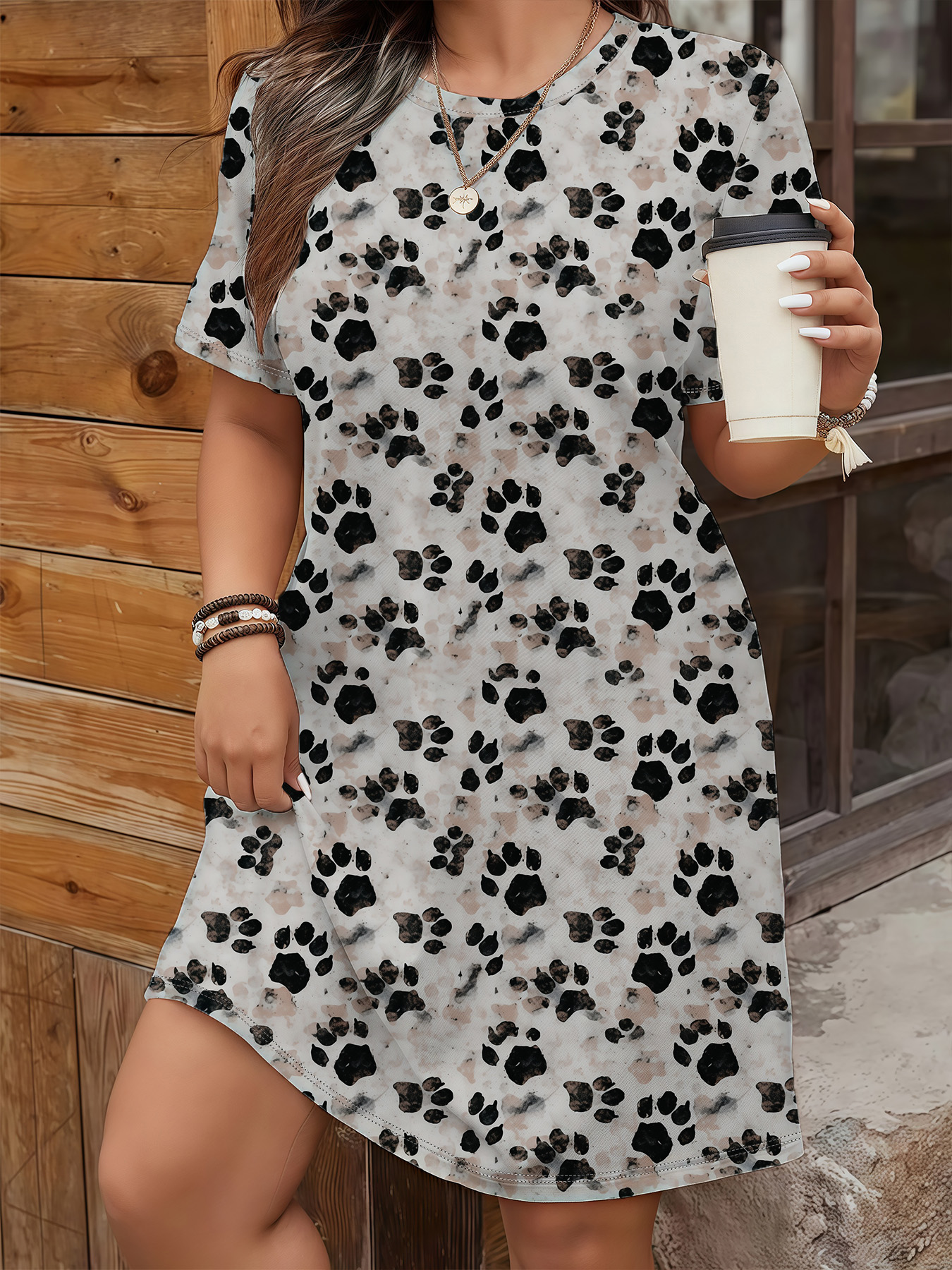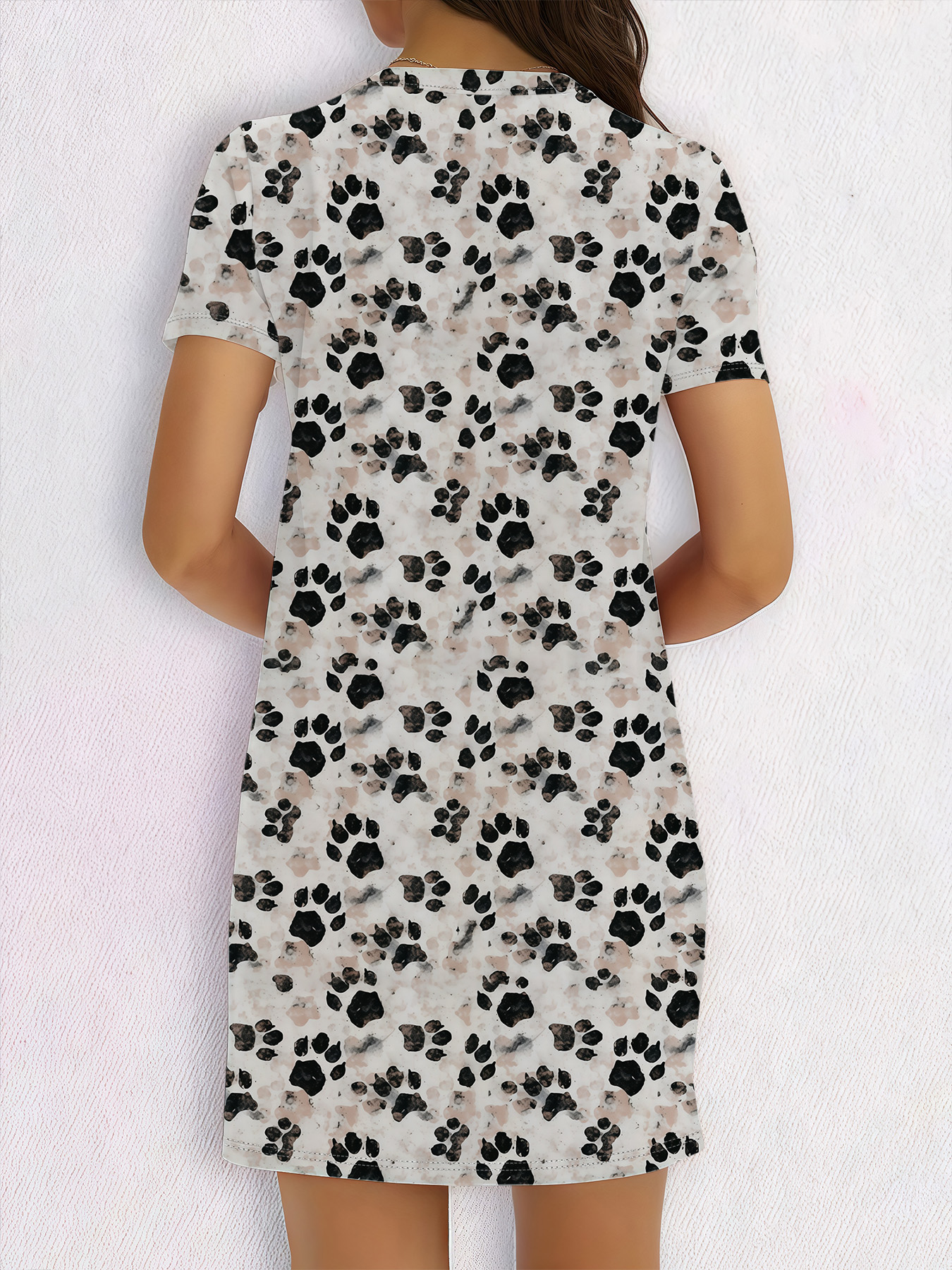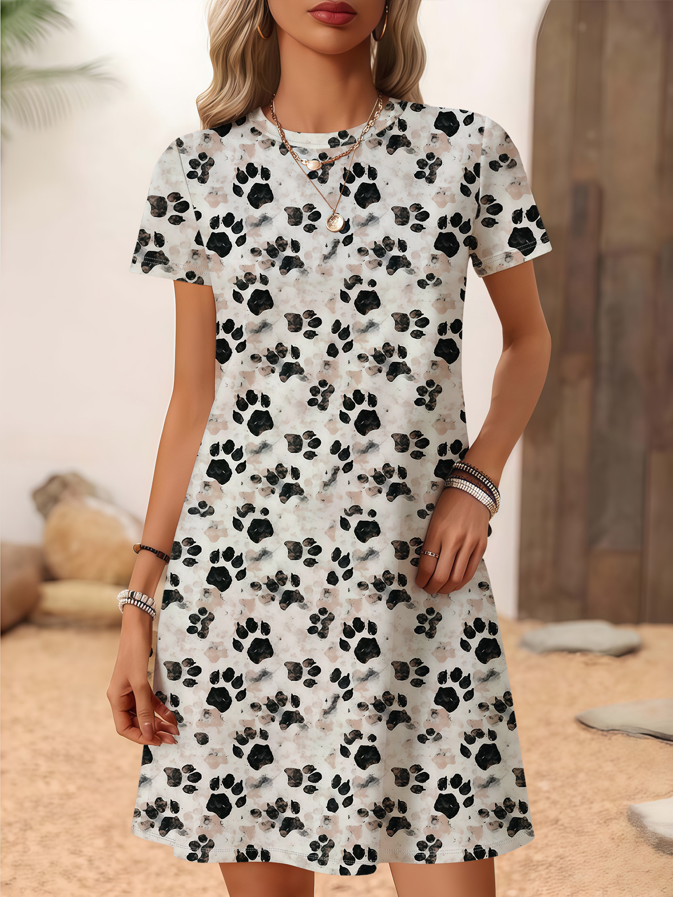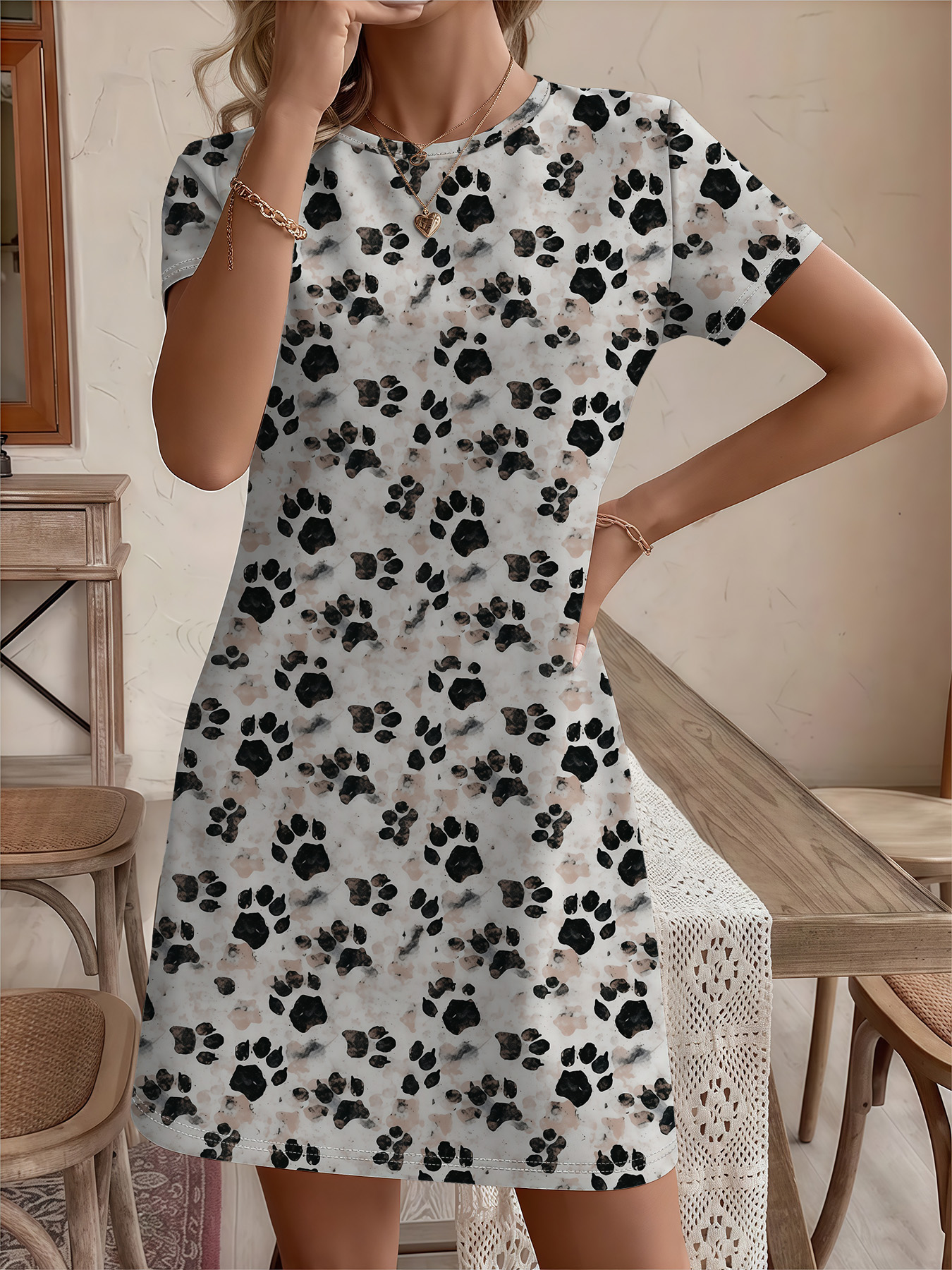 Women's autumn black footprint short-sleeved dressWomen’s autumn black footprint short-sleeved dress