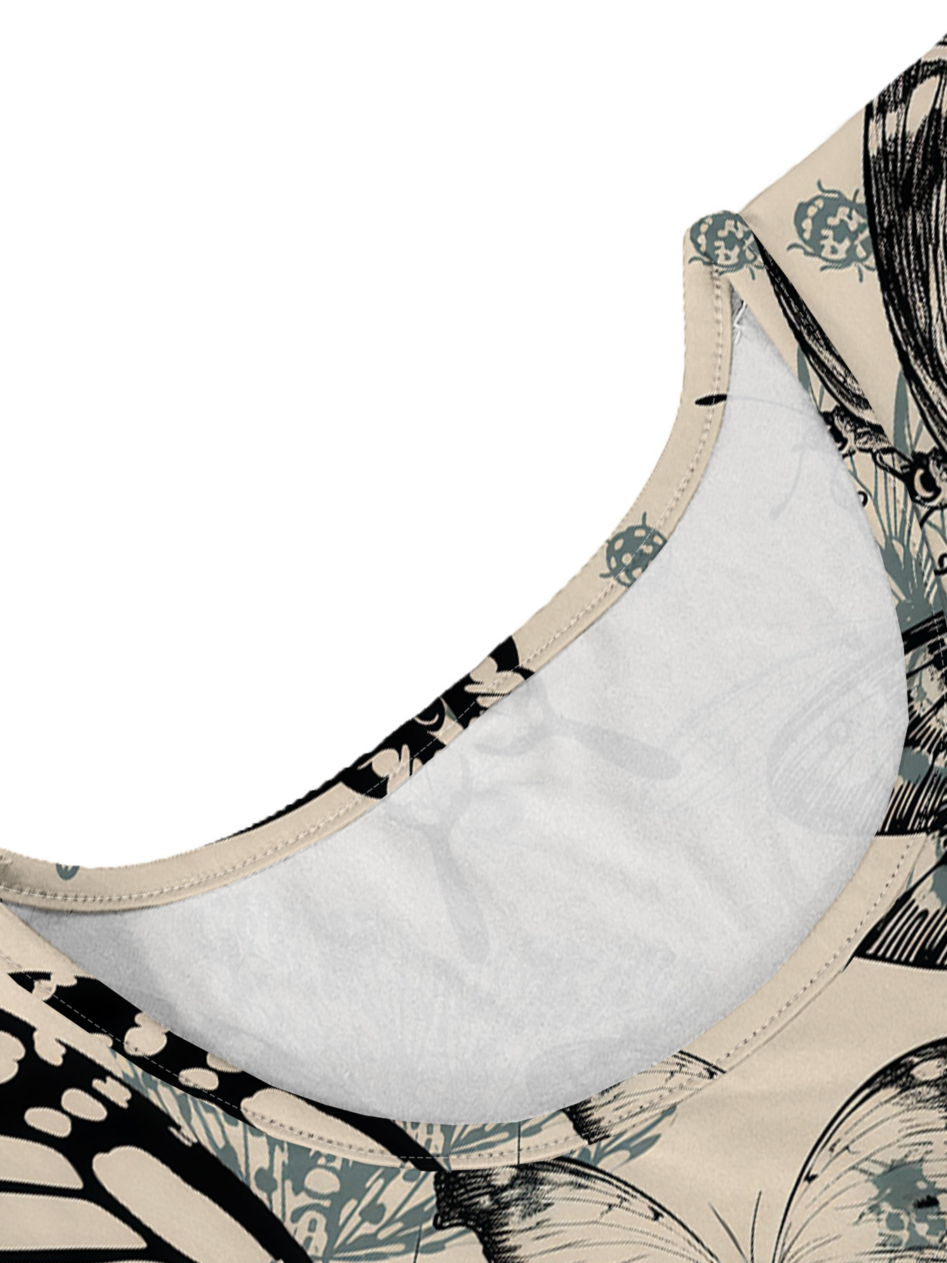 Women’s autumn black full-printed butterfly short-sleeved dress