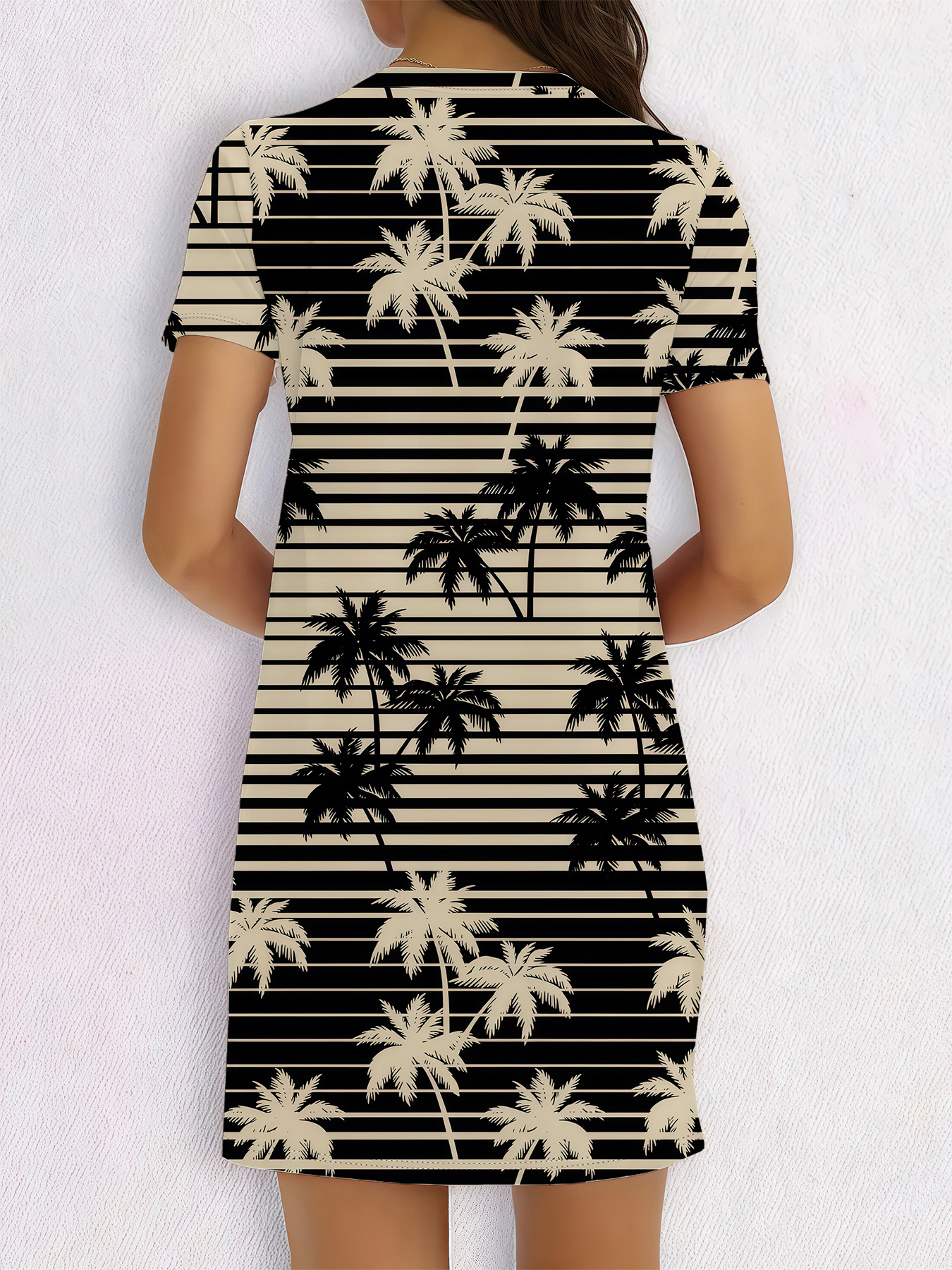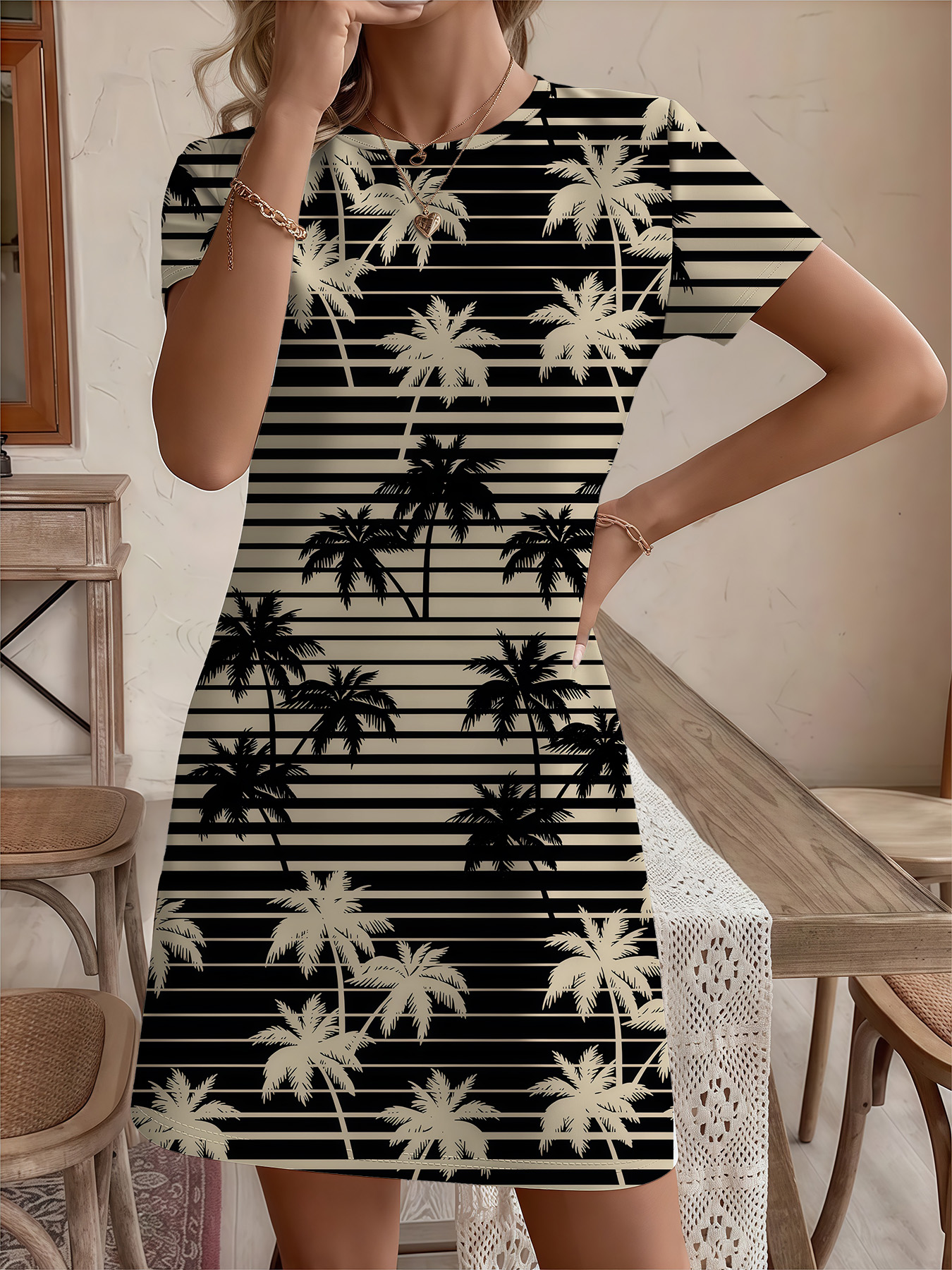 Women's autumn black striped short-sleeved dressWomen’s autumn black striped short-sleeved dress