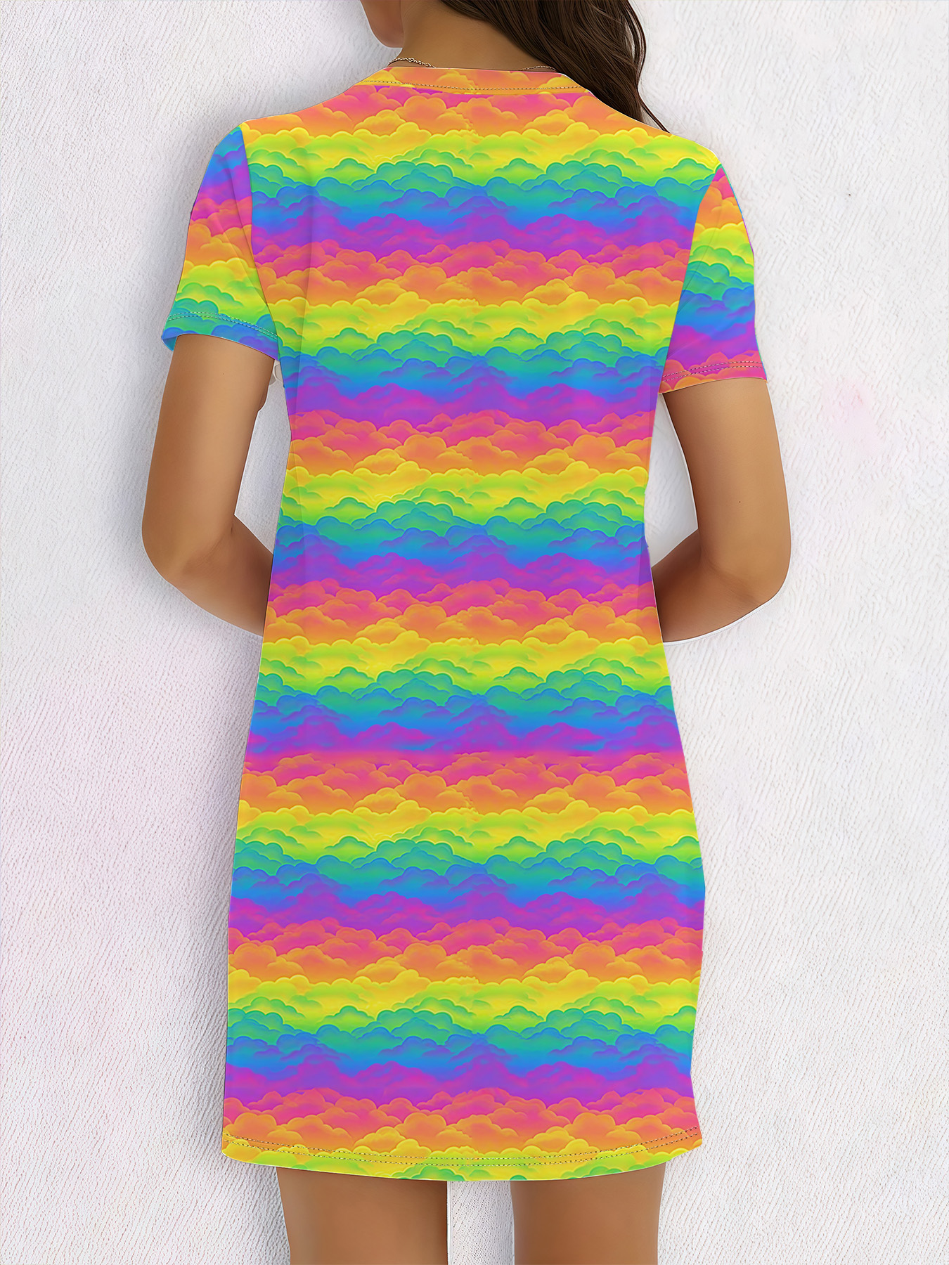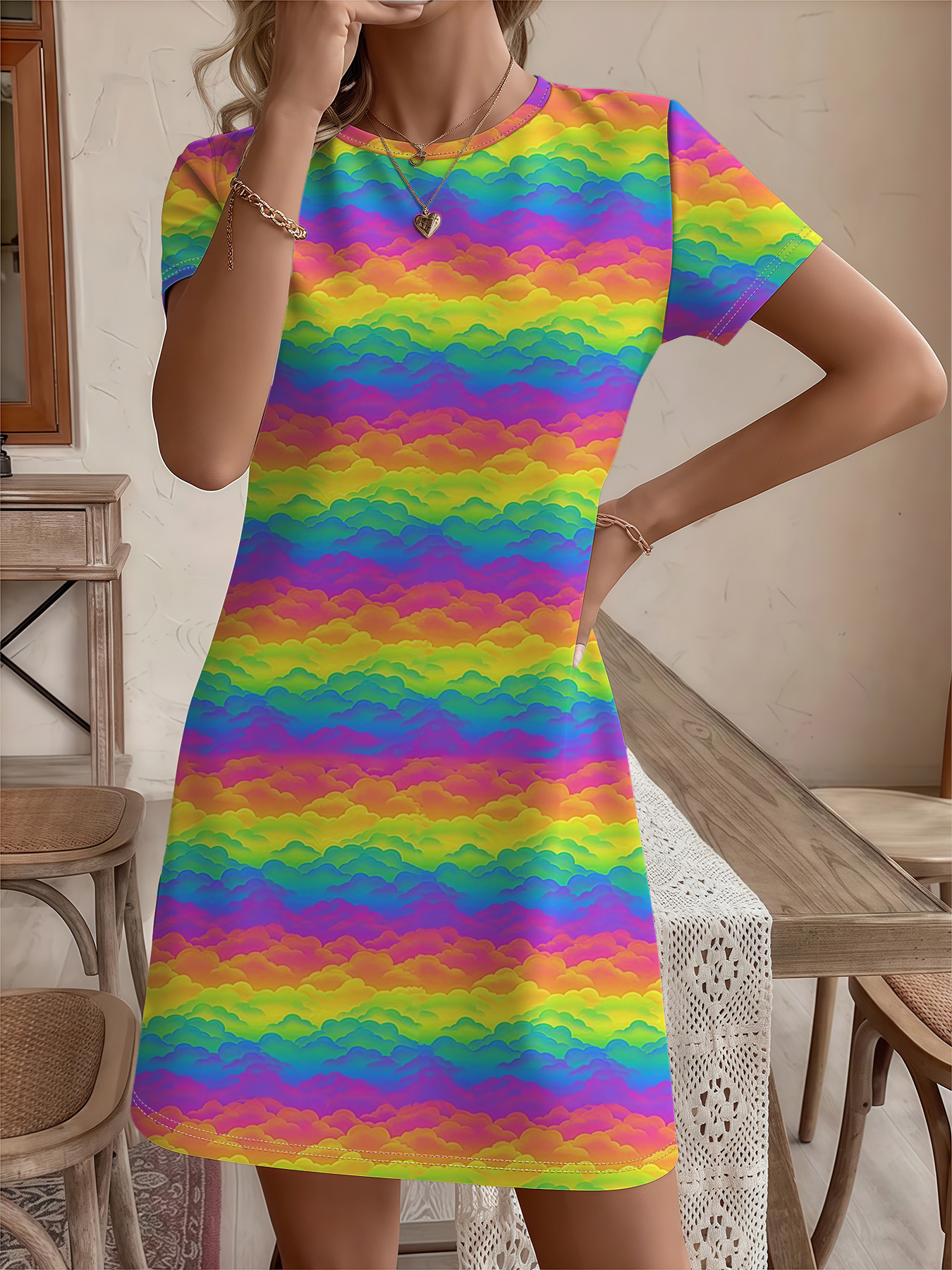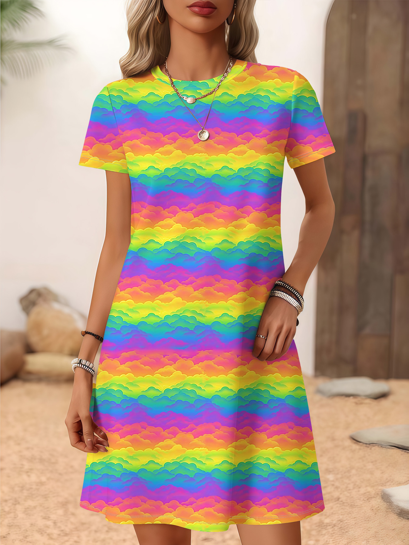 Women's autumn colorful wavy short-sleeved dressWomen’s autumn colorful wavy short-sleeved dress