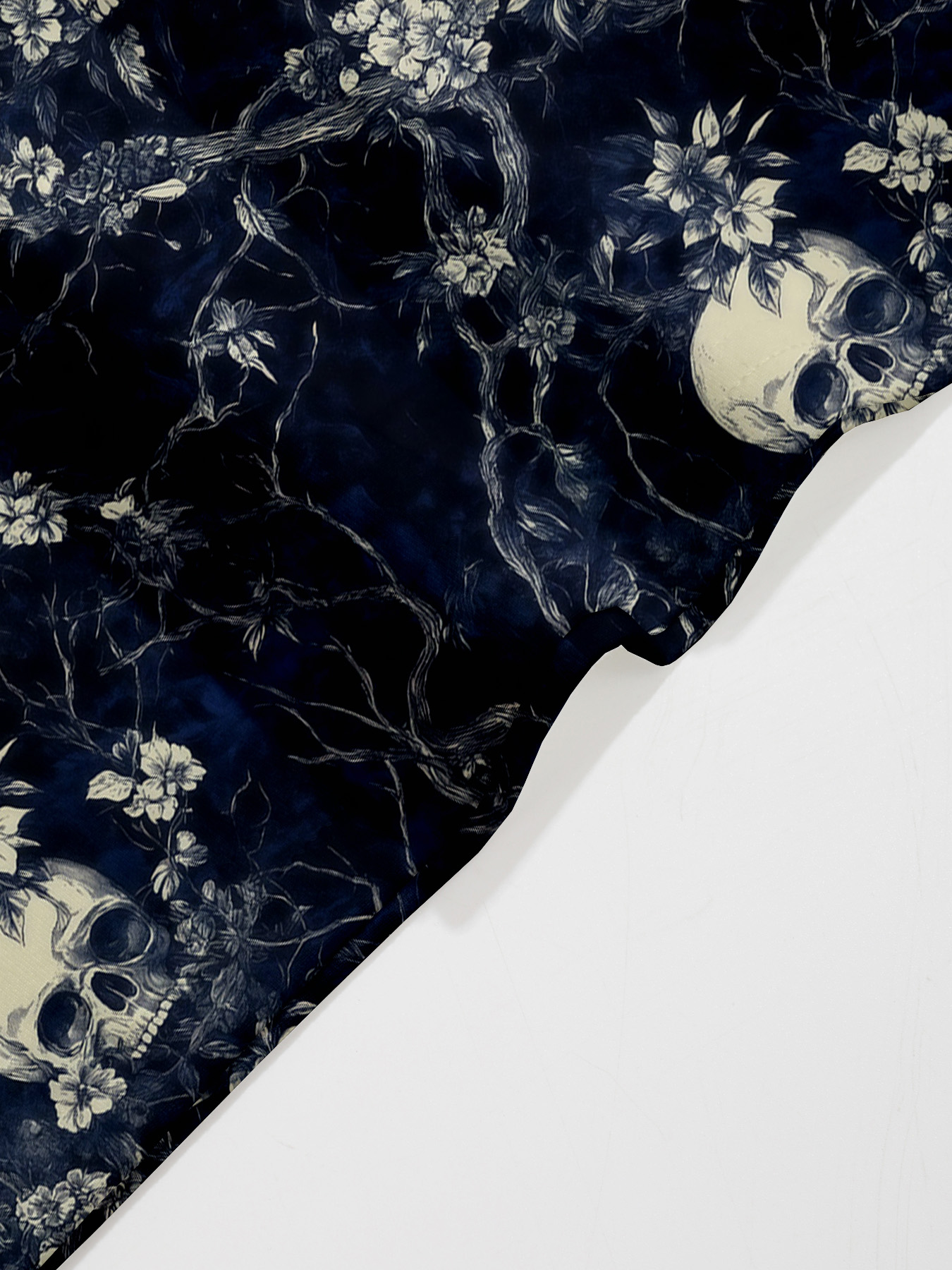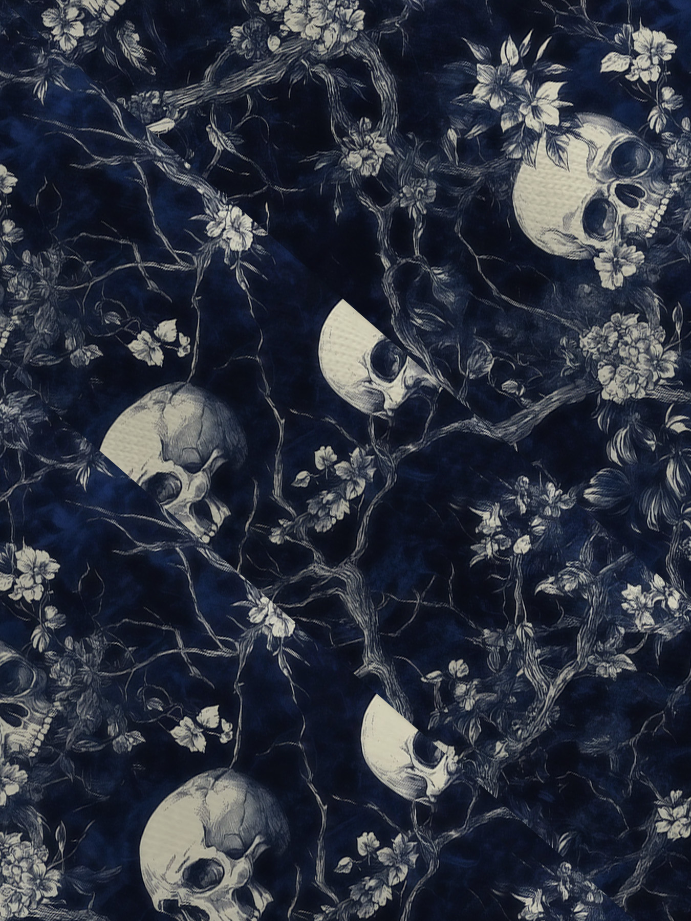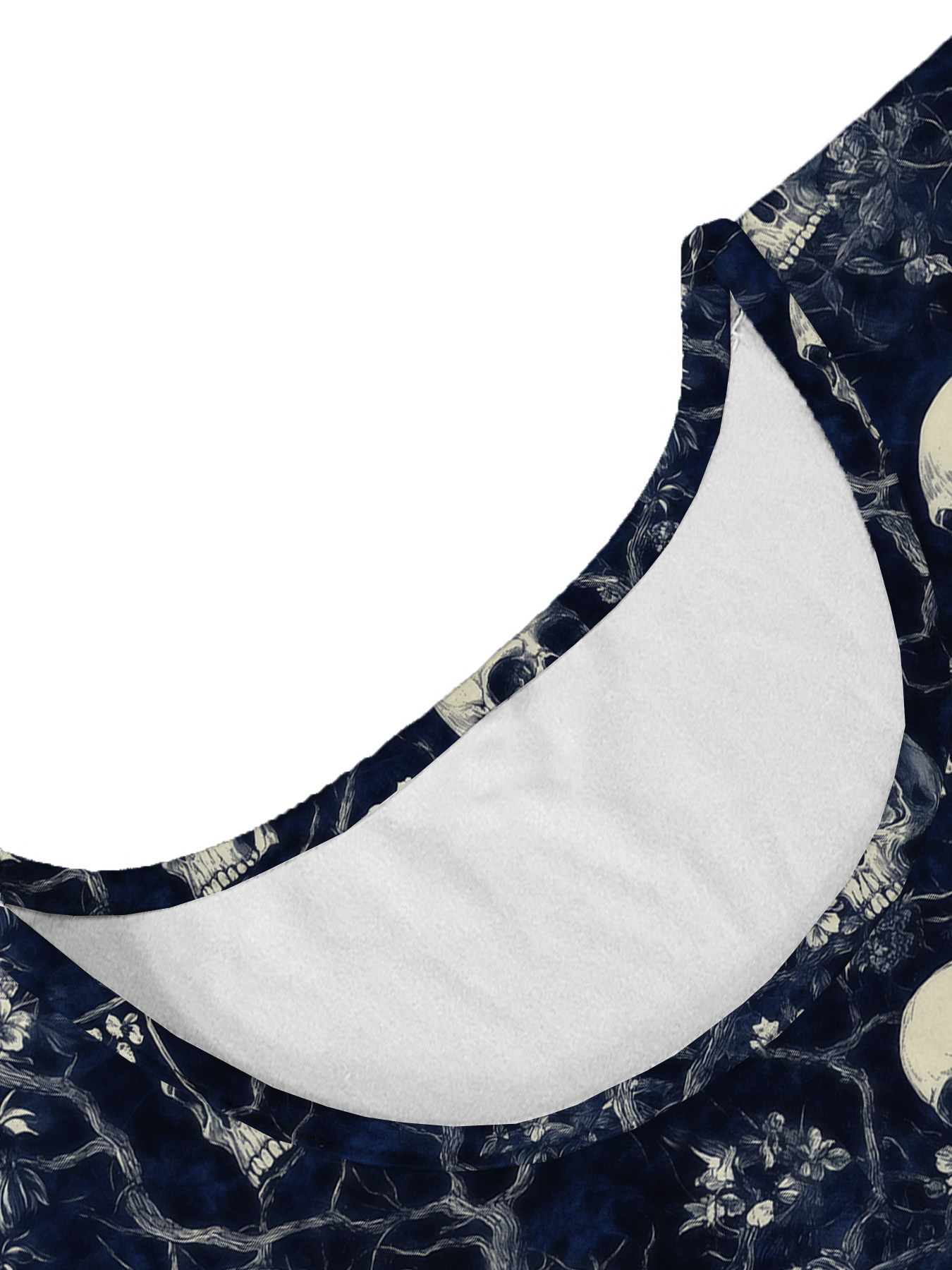 Be the first to review “Women’s autumn deep blue skull print short-sleeved dress”