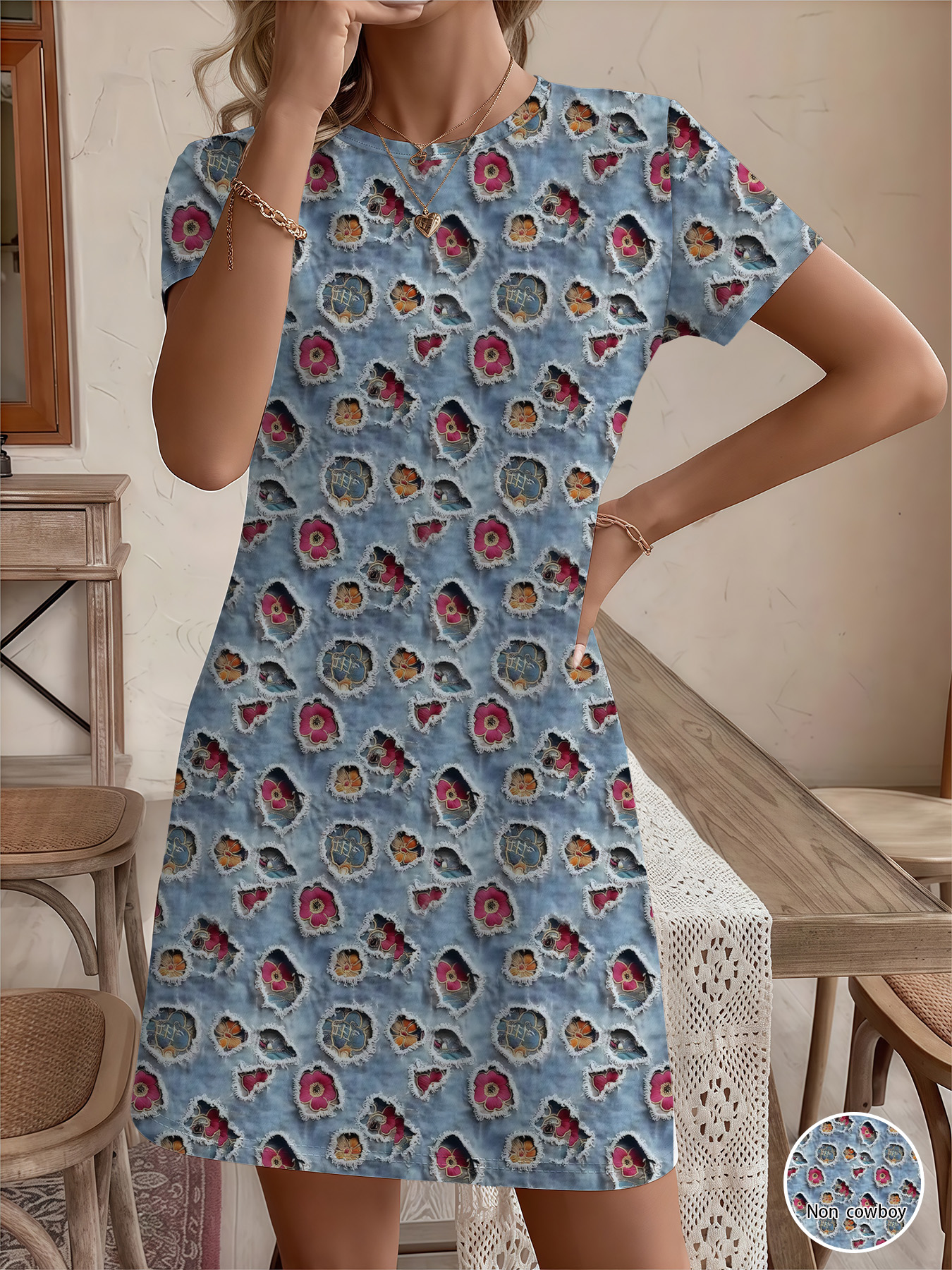 Women's autumn flower-patterned short-sleeved dressWomen’s autumn flower-patterned short-sleeved dress
