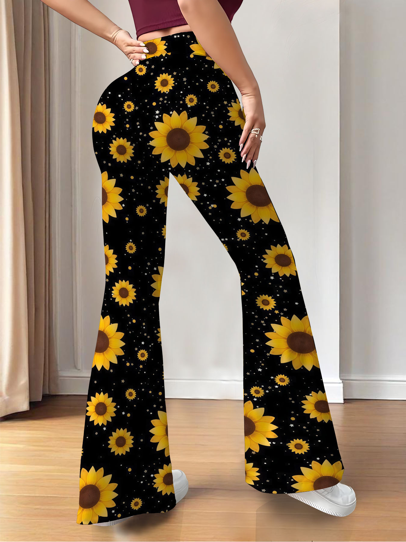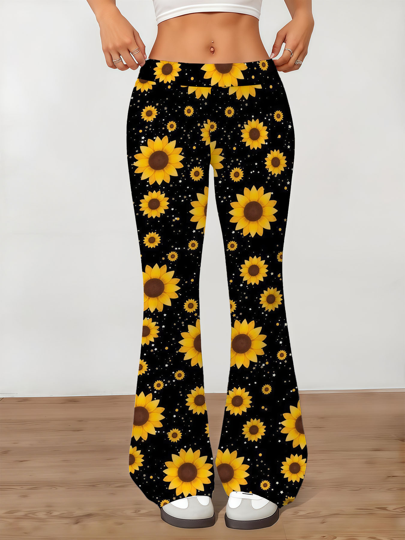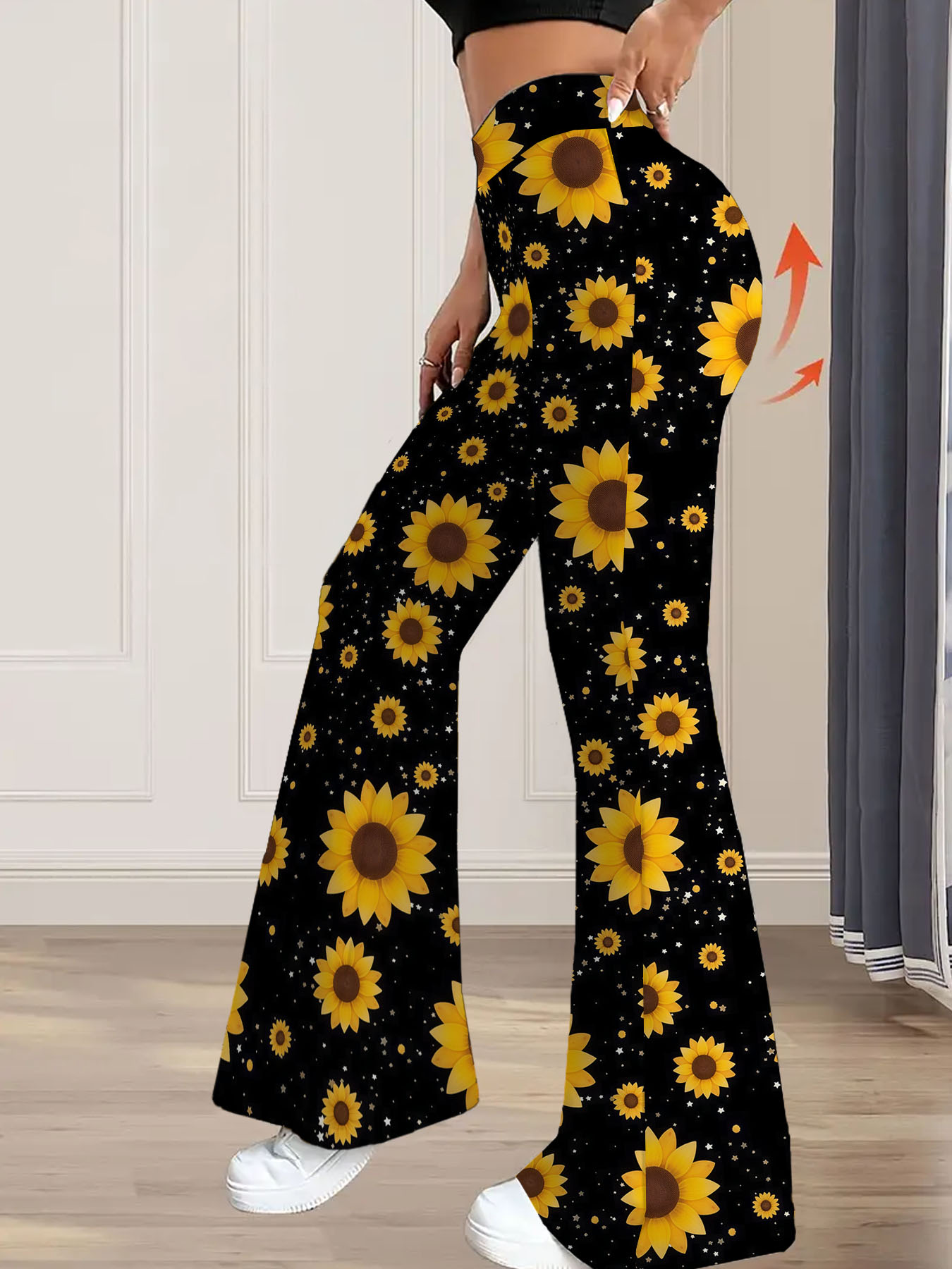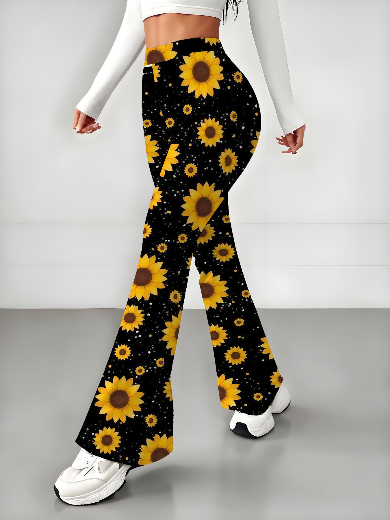 Women's autumn full-print sunflower wide-leg pantsWomen’s autumn full-print sunflower wide-leg pants