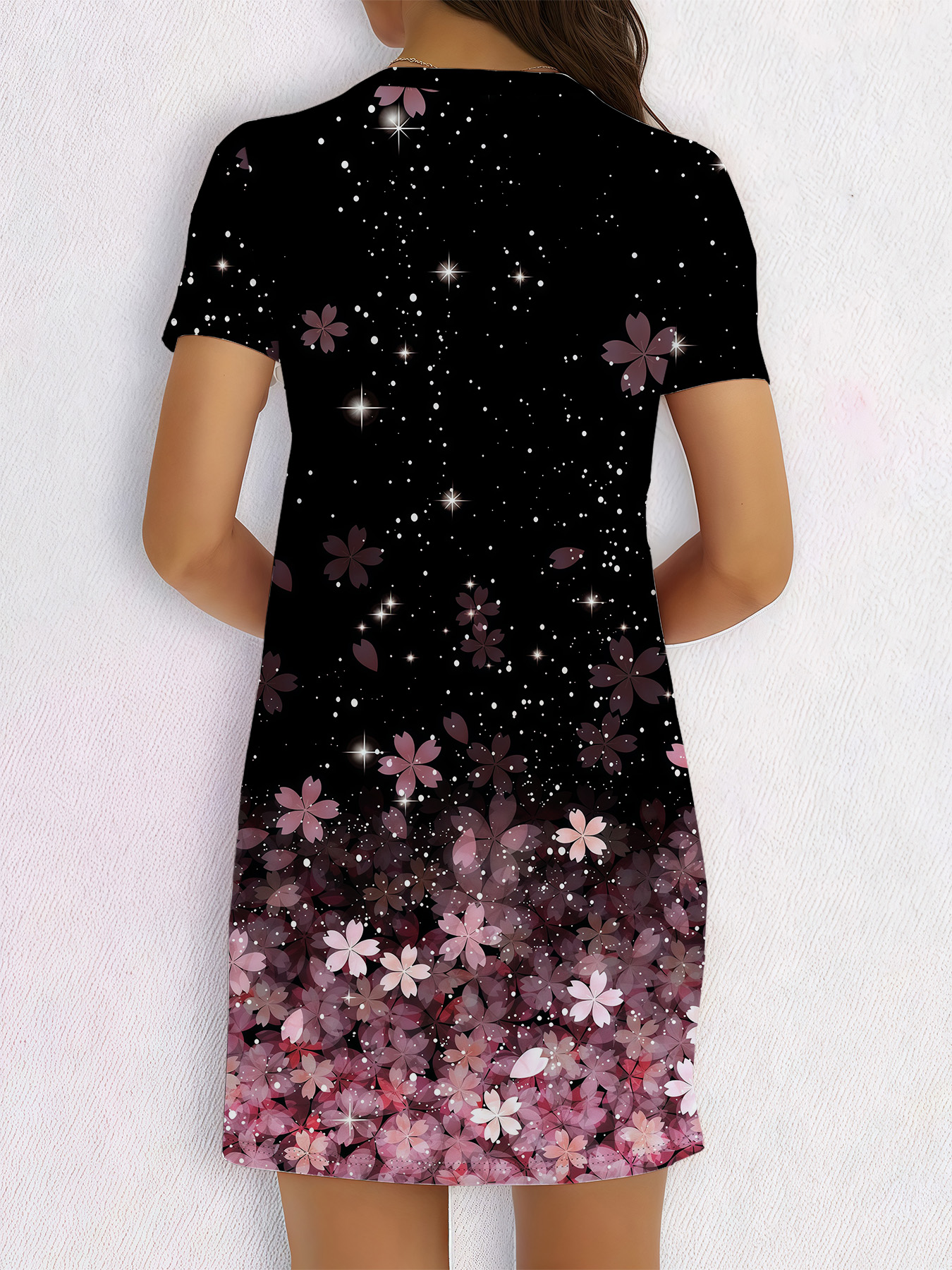 Women's autumn gradient cherry blossom short-sleeved dressWomen’s autumn gradient cherry blossom short-sleeved dress