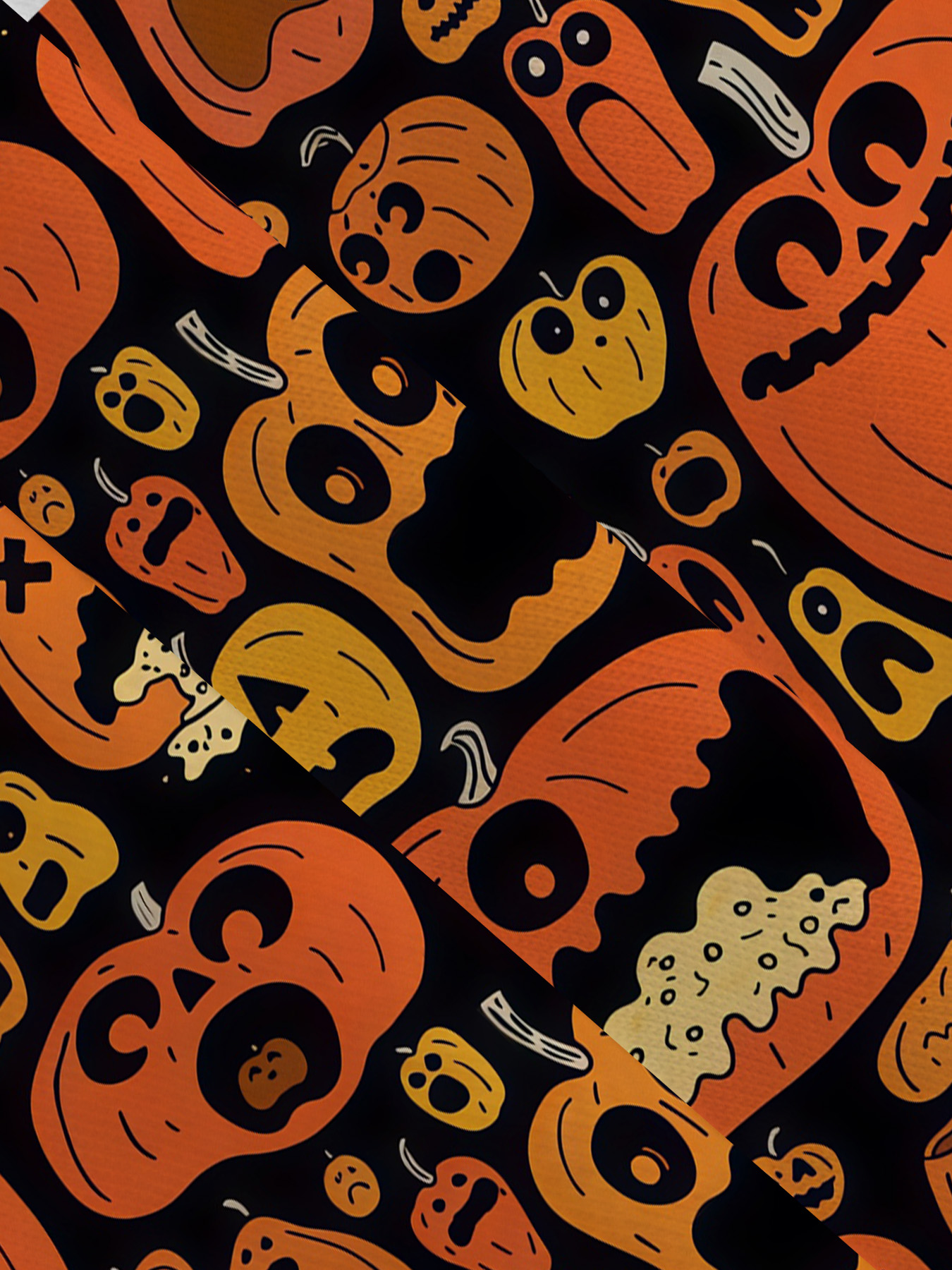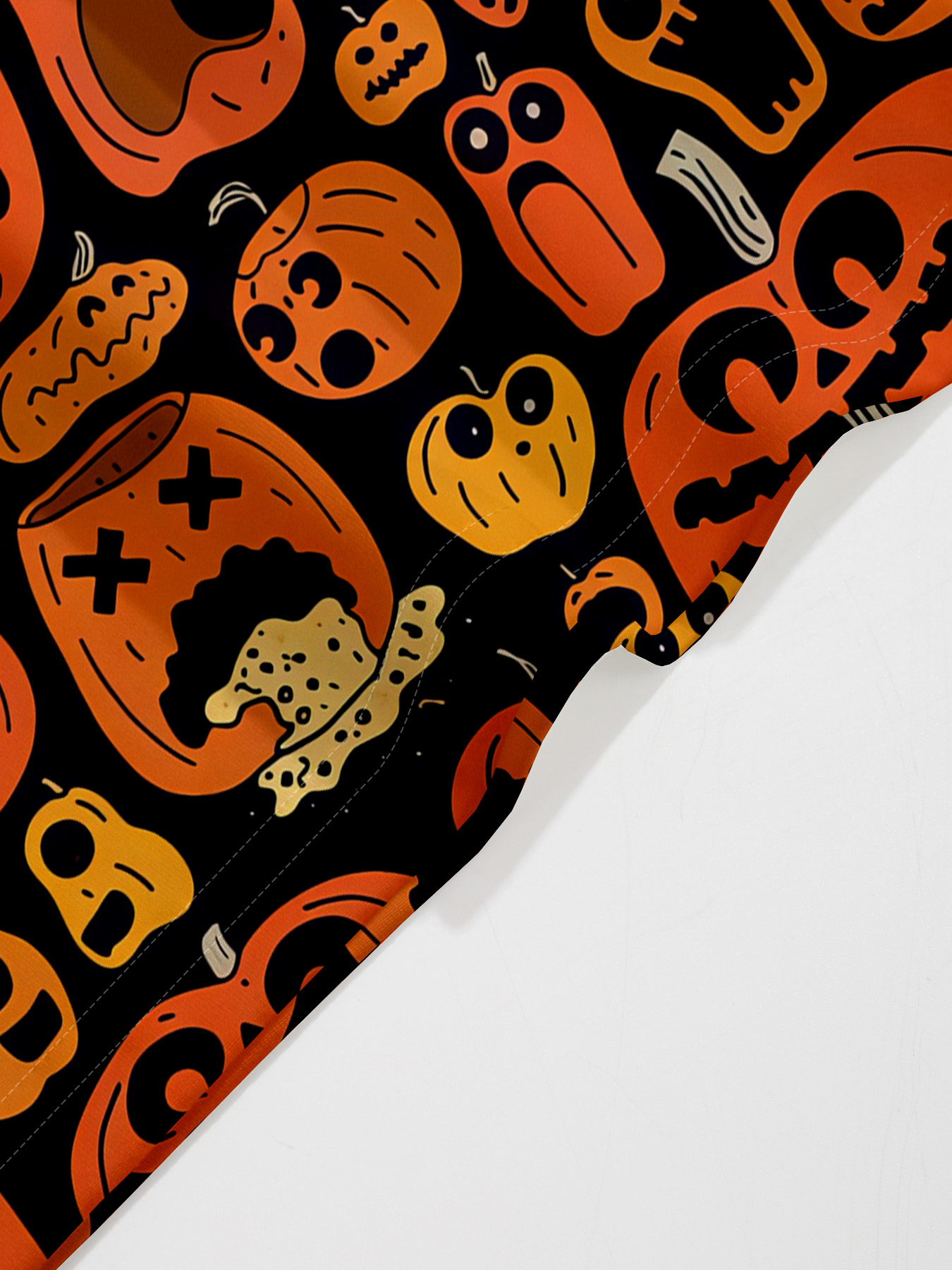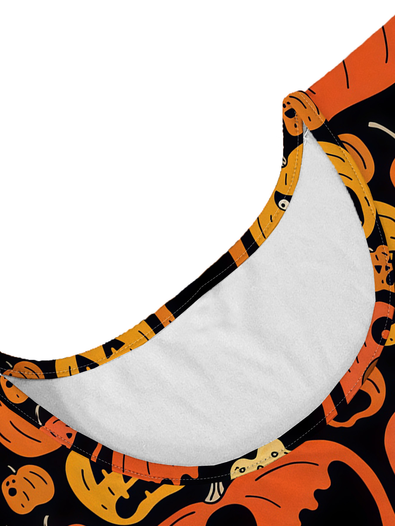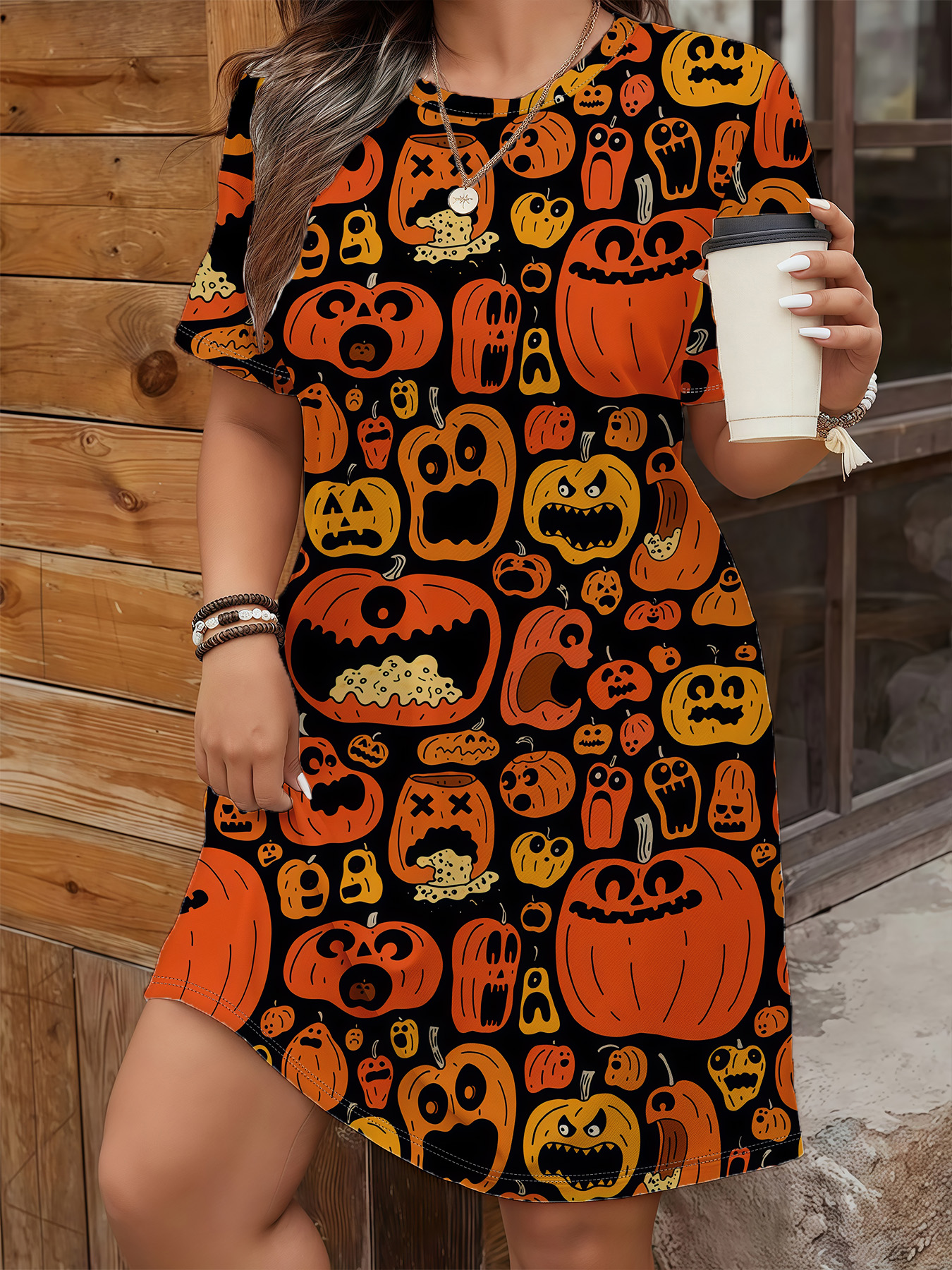 Women’s autumn Halloween pumpkin print short-sleeved dress