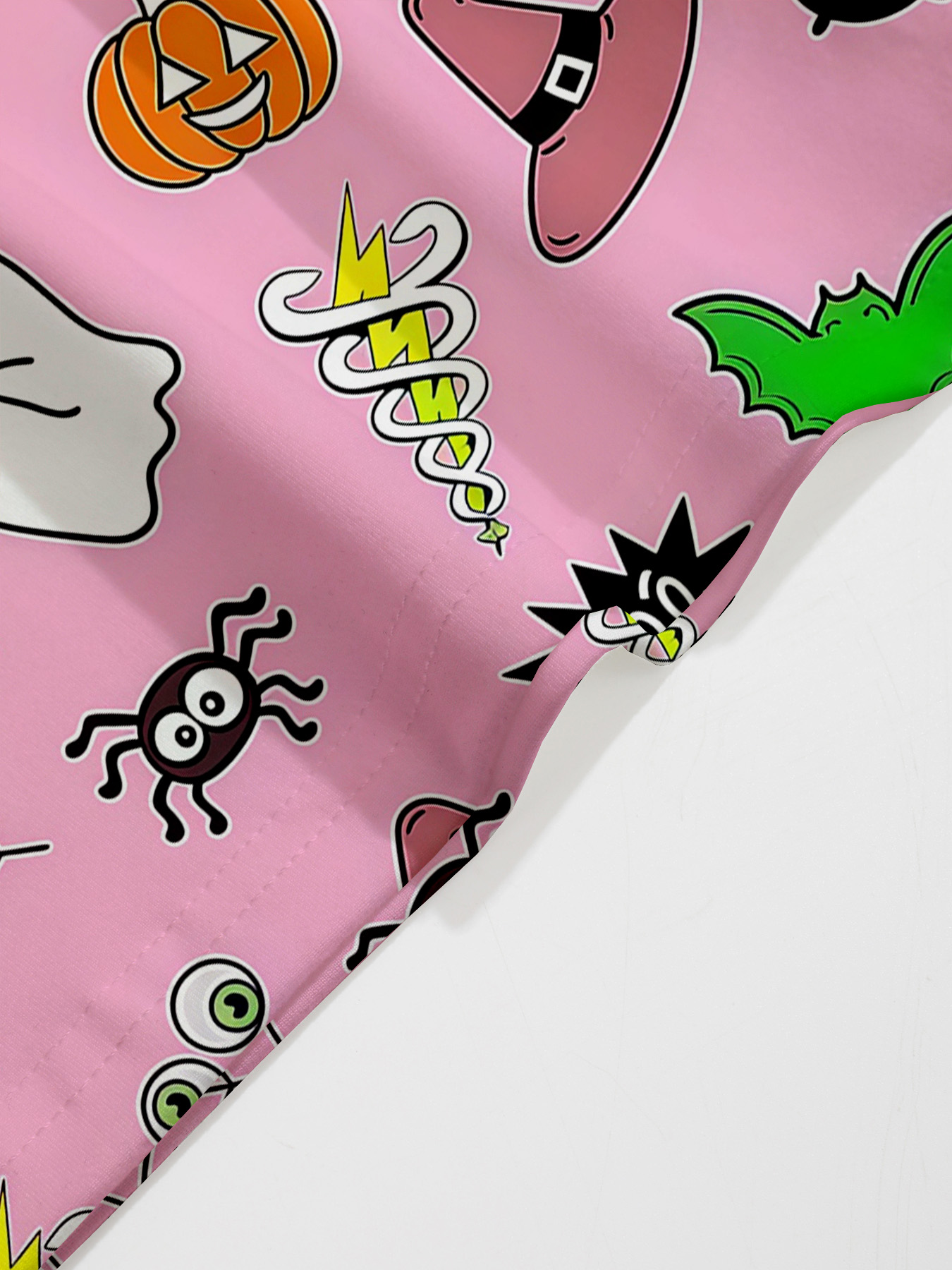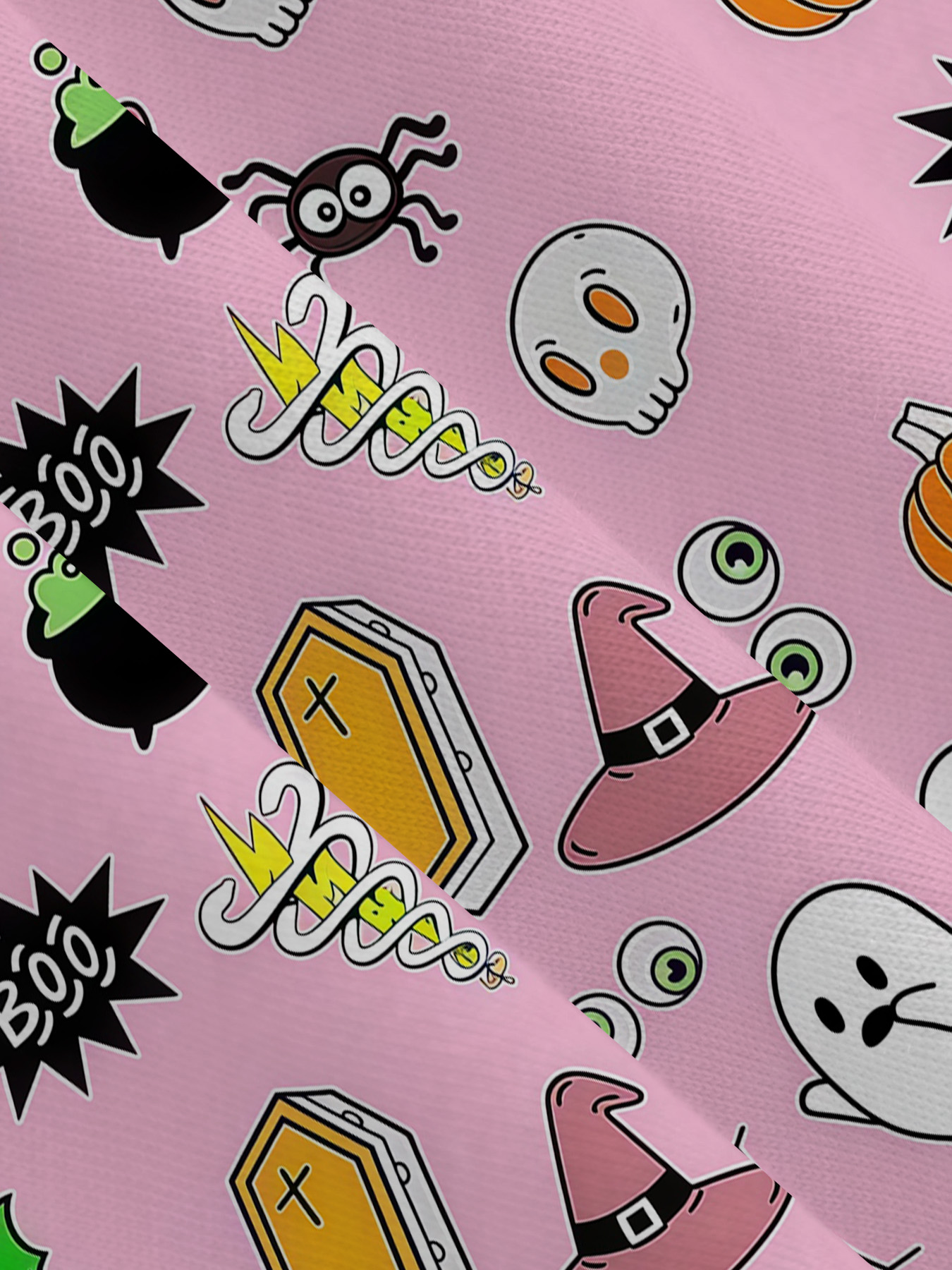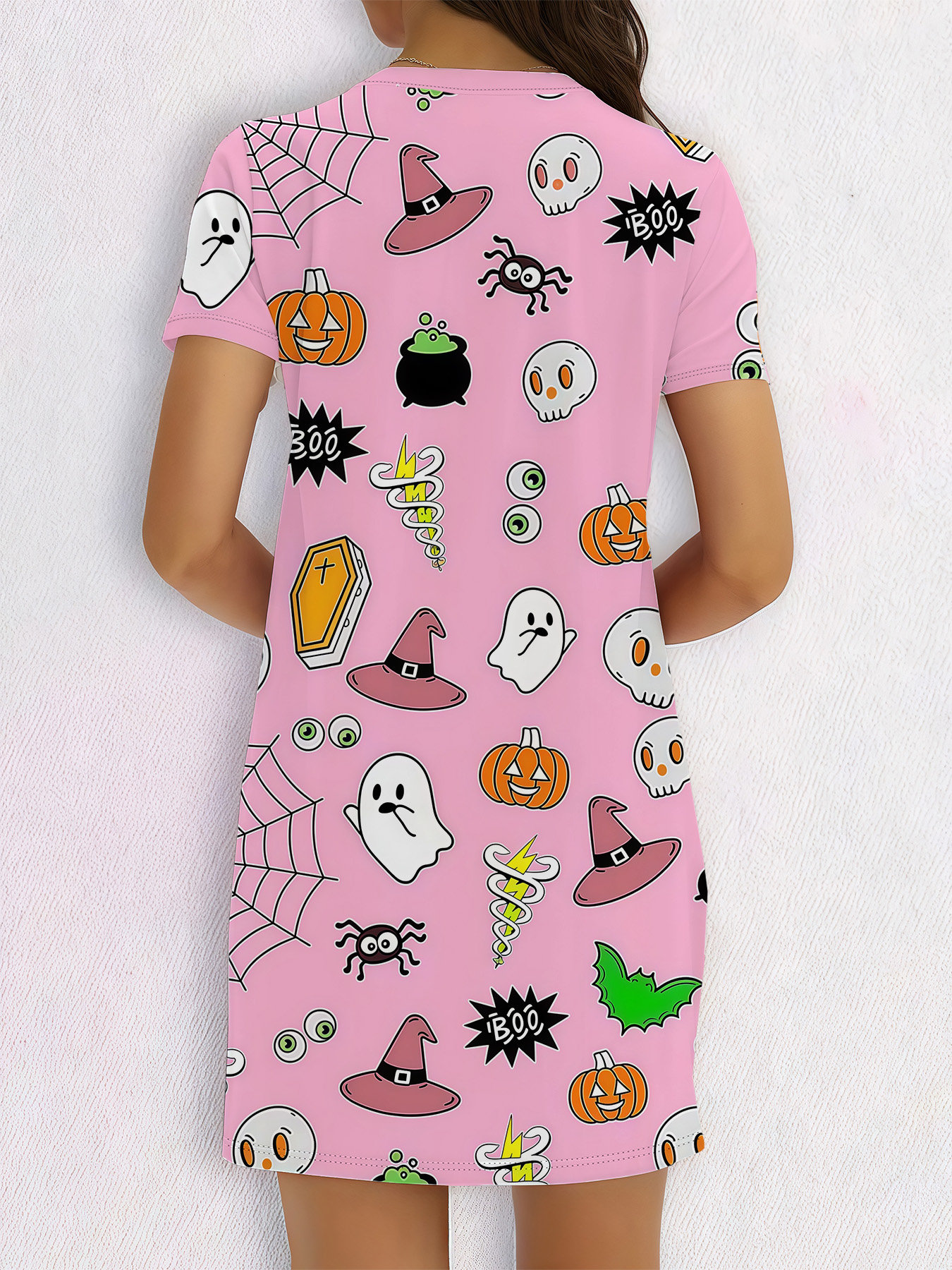 Women's autumn pink Halloween full-print short-sleeved dressWomen’s autumn pink Halloween full-print short-sleeved dress