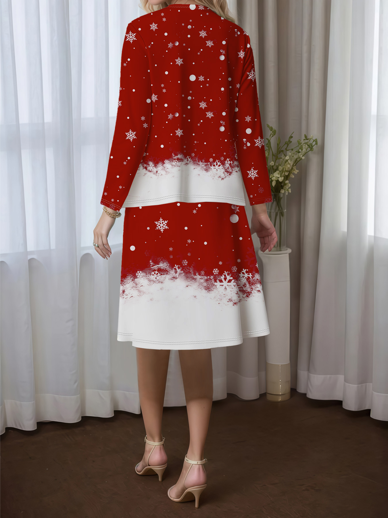 Women's autumn red Christmas-themed cardigan dress setWomen’s autumn red Christmas-themed cardigan dress set