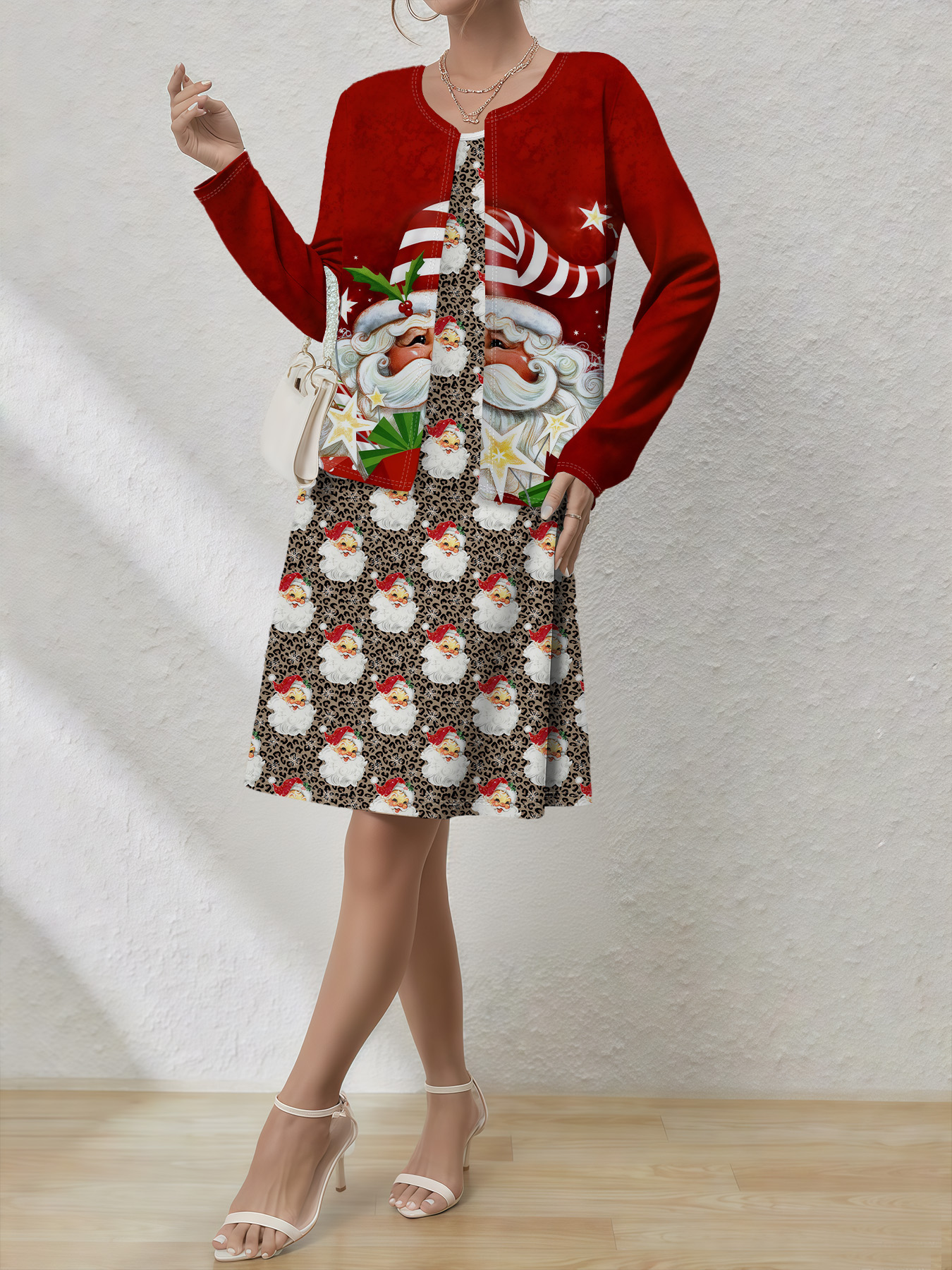 Women's autumn red Santa Claus cardigan dress setWomen’s autumn red Santa Claus cardigan dress set