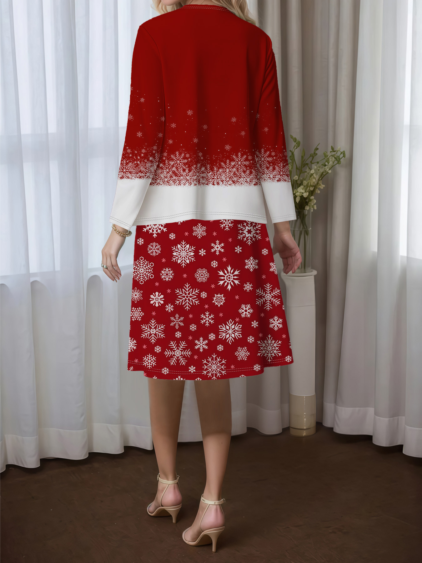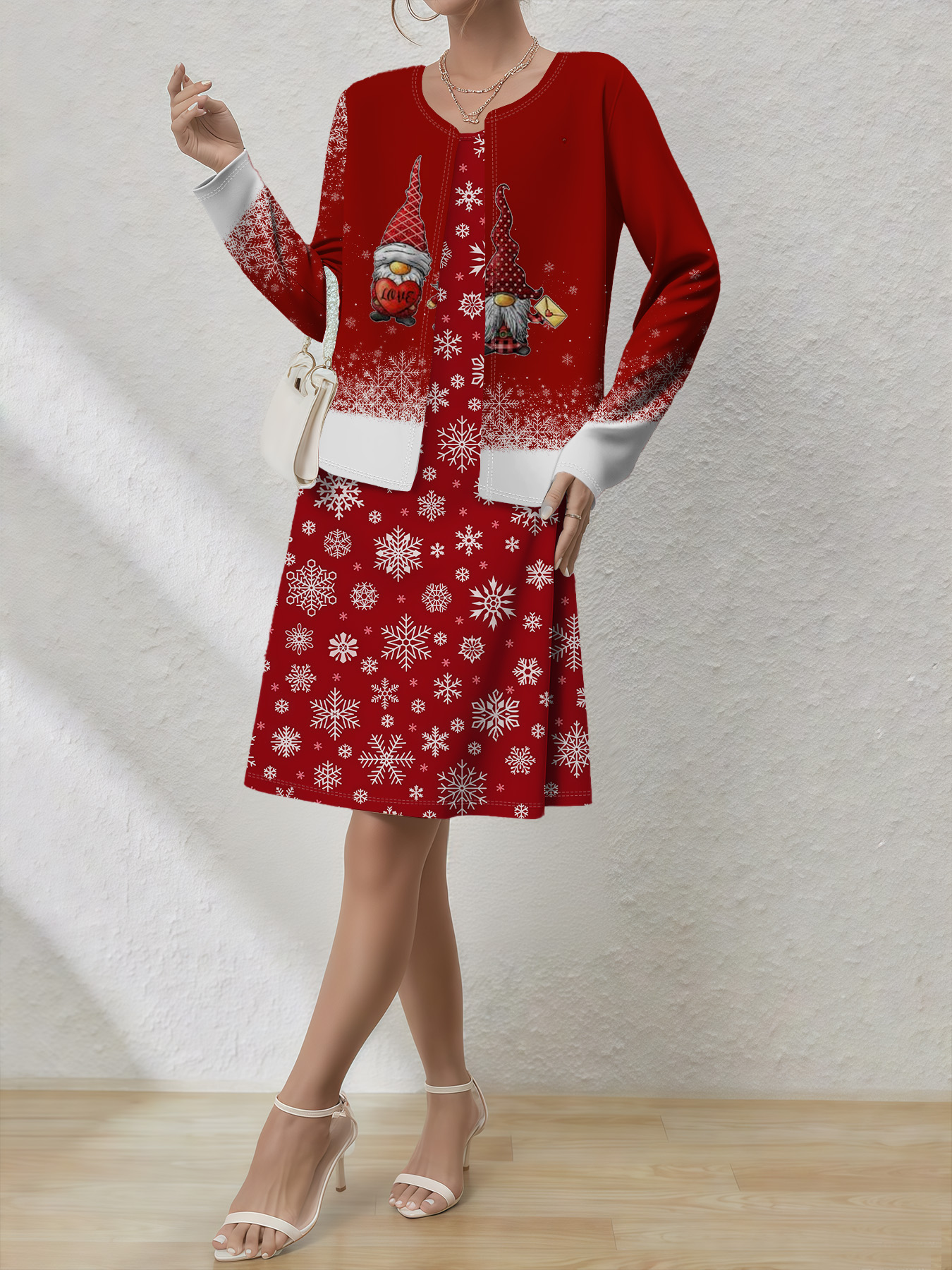 Women’s autumn red snowflake ground essence cardigan vest dress set